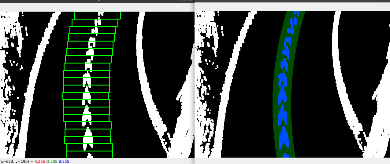 Two schemes are used for the lane line recognition part, one is a scheme that uses UNet to implement semantic segmentation of lane lines, and the other is a scheme that uses normal image processing algorithms and uses sliding window detection to implement it.